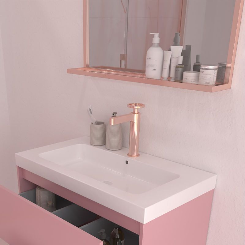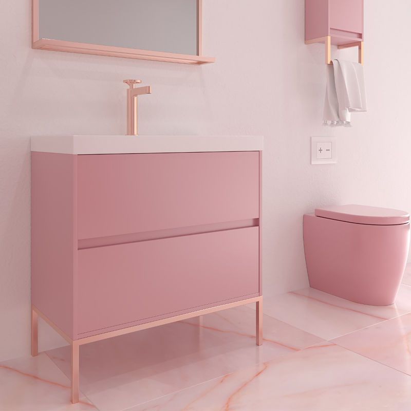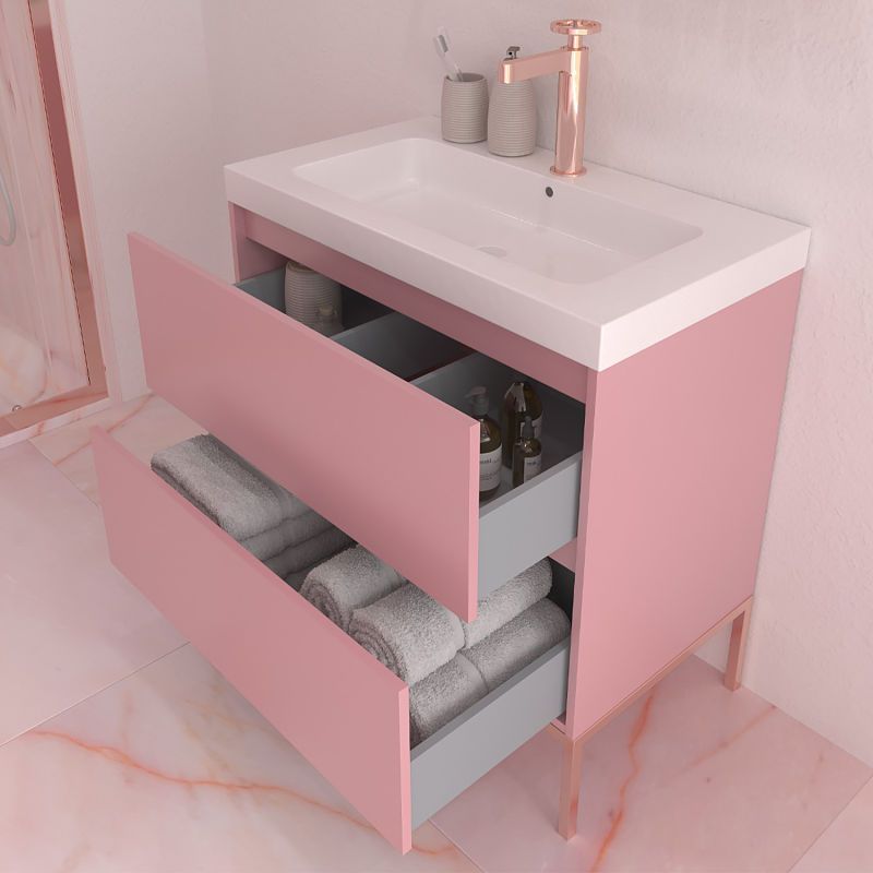 Instalación: El mueble se sirve ensamblado y viene acompañado de patas de aluminio acabadas en negro, blanco, oro, oro rosa, cromo y cobre. Estas patas quedarán decorativas con el color del mueble de baño.