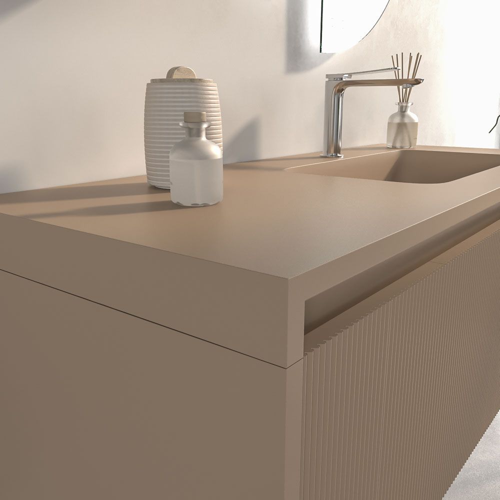 Para completar el mueble de baño de diseño, el lavabo de SOLID SURFACE se puede acabar en la mismo color del mueble y puedes añadir espejos enmarcados en aluminio exactamente igual al color del mueble. Combina con todos los tipos de espejos de nuestro catalogo.