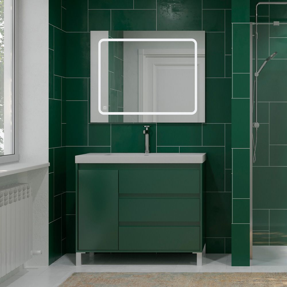 Mueble CARMEN 3 cajones 1 puerta verde.jpgMueble de baño con patas 3 cajones / 1 puerta CARMEN acabado VERDE OLIVO