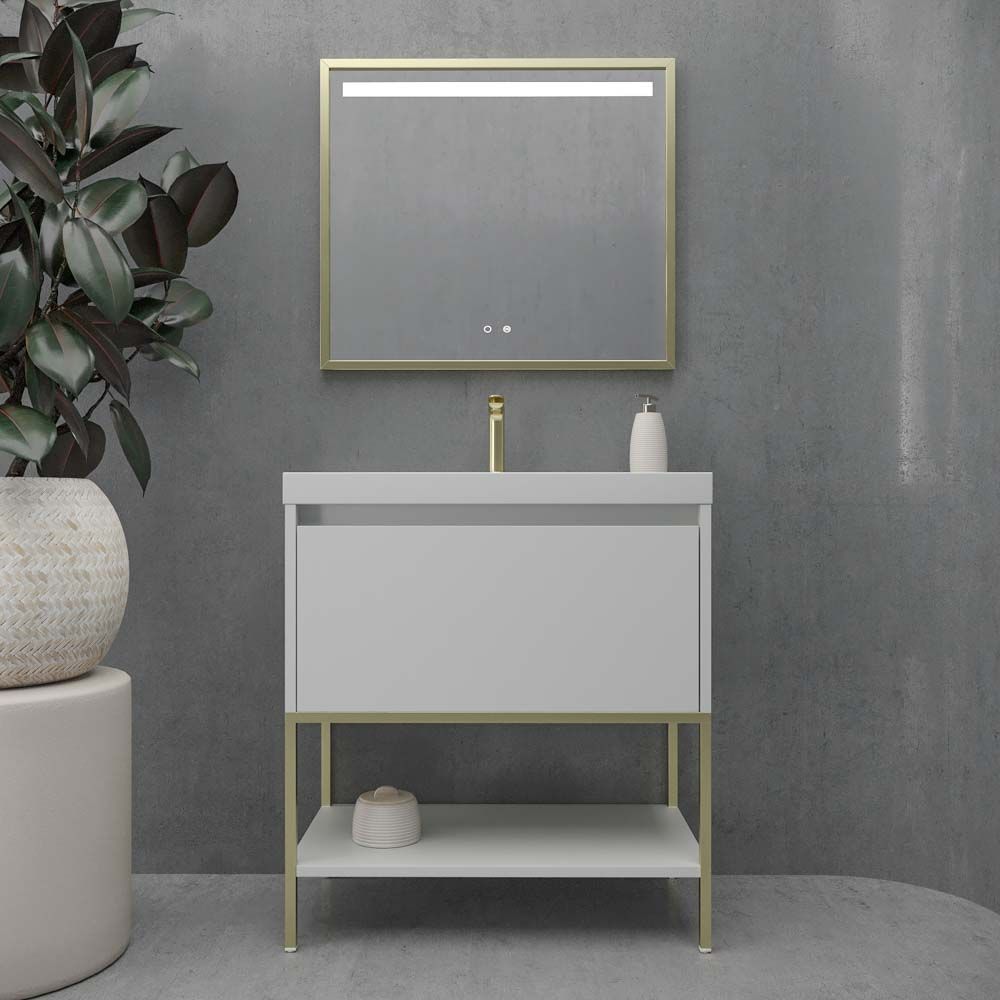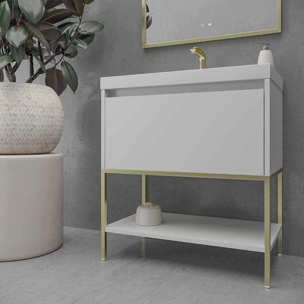 Mueble de baño ELEN con patas 1 cajón – 1 balda inferior GRIS PERLA / ORO MATE