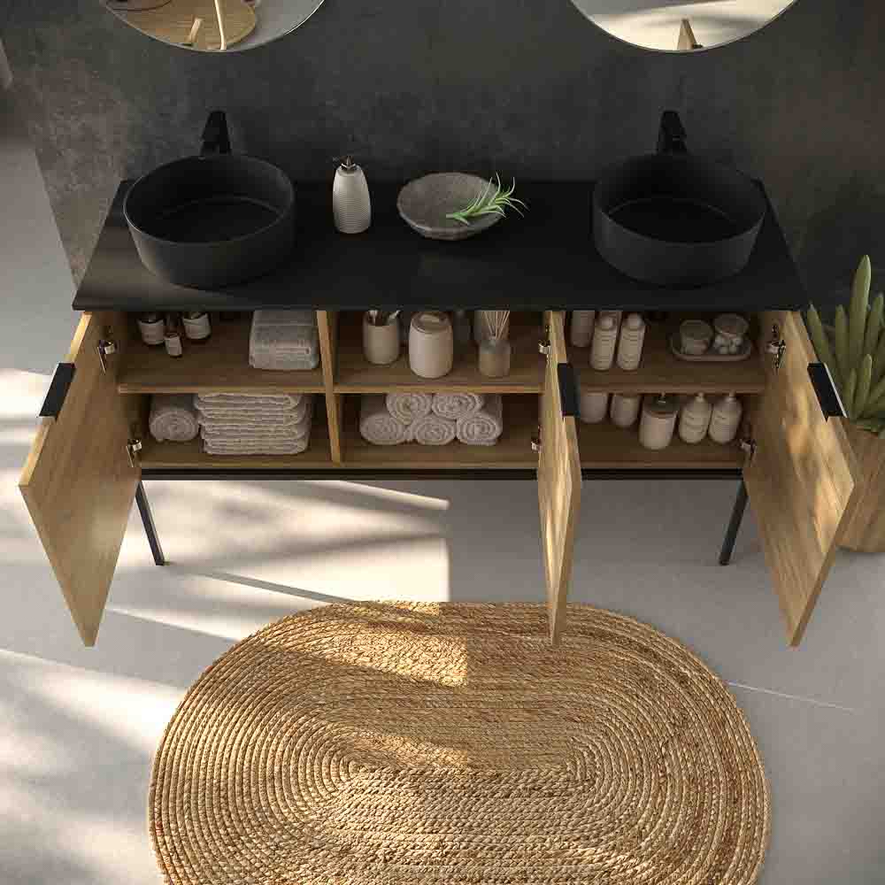 - Con patas: elige un mueble de baño con patas si quieres un diseño atractivo y una estabilidad total para tu mueble de lavabo.