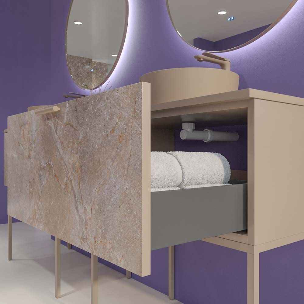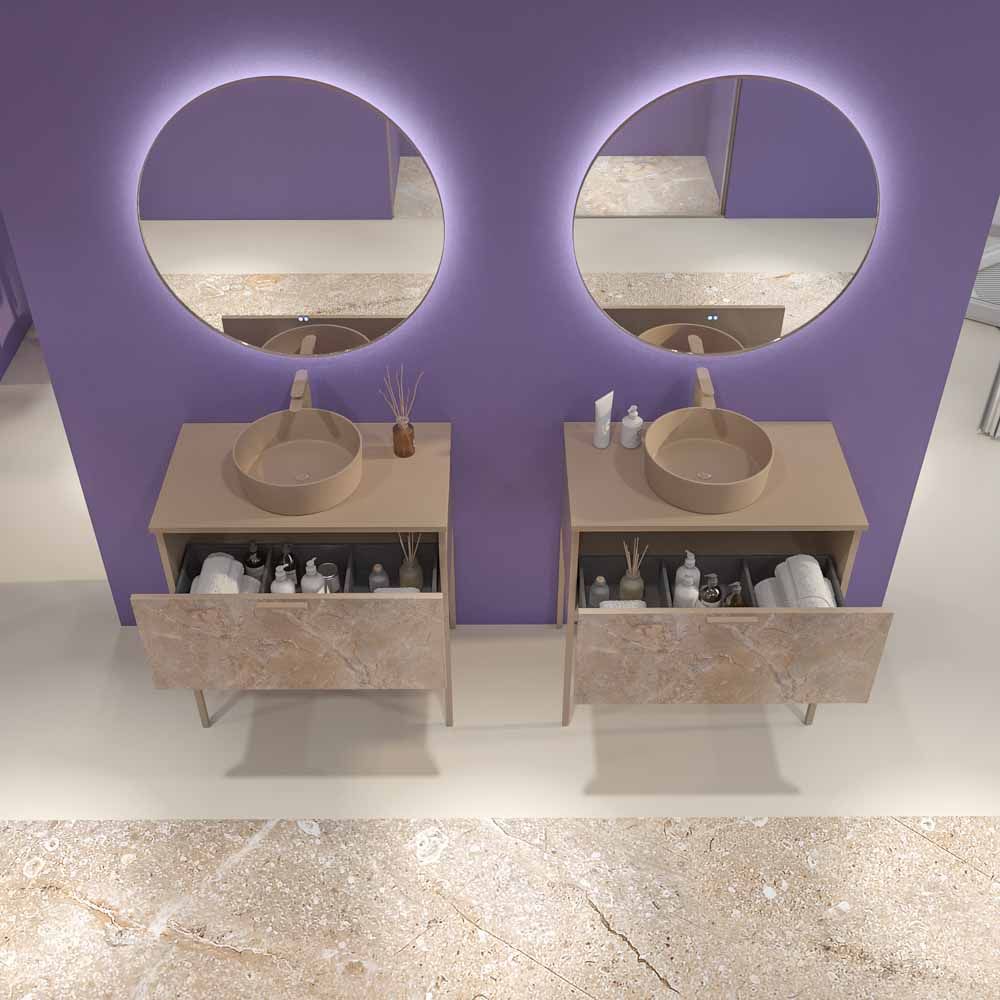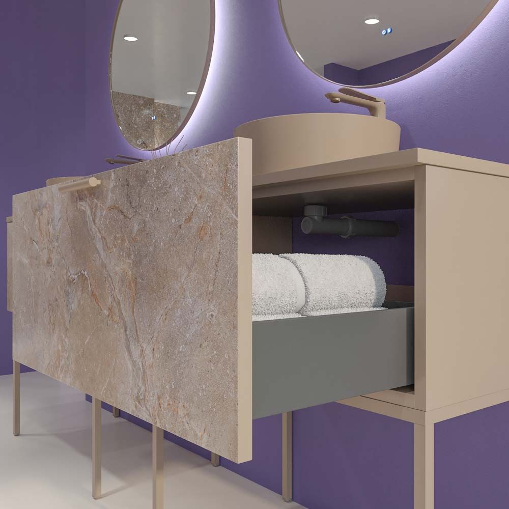 El mueble lo podrás escoger en varios acabados diferentes de mármol  combinado con una  amplia gama en colores para que no tengas problemas de compatibilidad con el resto de accesorios de baño.