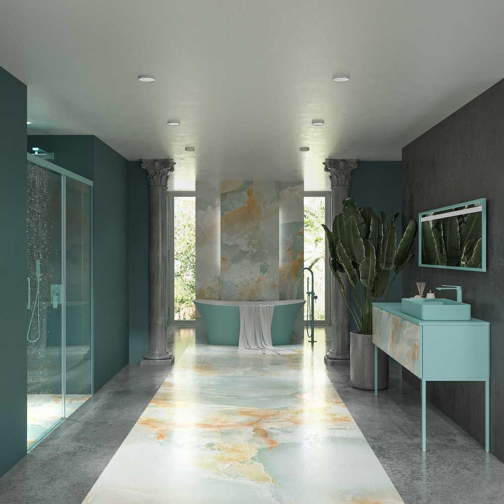Esta fabricado en MDF, un material muy resistente y duradero para que el mueble tenga una larga vida. La pintura que se proyecta en el módulo esa base de iones de plata antibacteriana que lo hace mas resistente. El frente impreso 3D efecto marmól lo hace un mueble de baño de diseño único en el mercado nacional e internacional.