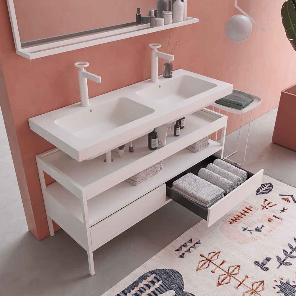 El conjunto consta de un mueble con lavabo resina . Este lavabo se puede acabar en el color a elegir , La resina lacada es un material muy poco poroso y de alta resistencia, muy popular porque tiene una gran durabilidad y es de fácil de limpieza.