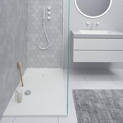 Platos de Ducha AGAPE RAL 9003 color blanco VAROBATH 03 2 1Plato ducha de resina AGAPE Blanco y otros colores exclusivos – con textura pizarra – antibacteriano y antideslizante