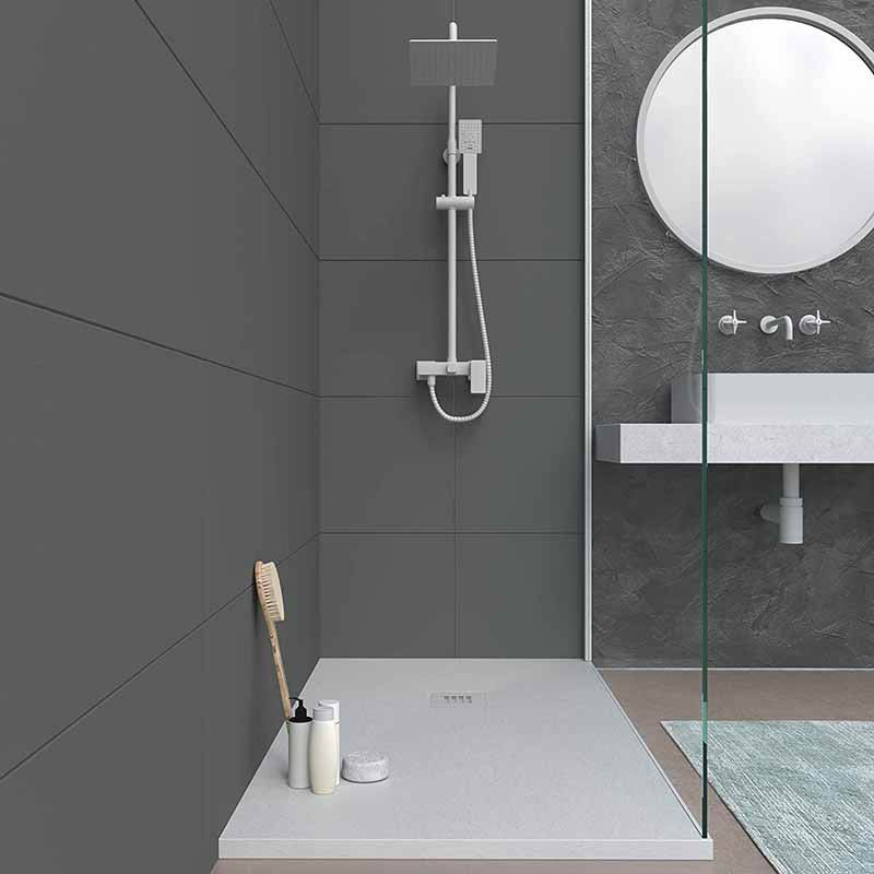 El plato de ducha de resina de la colección Mystone color Arena es ultra delgado, es decir, tiene un espesor total reducido que permite montarlo a ras del suelo o encima. Realizado en resina con carga mineral textura pizarra y acabado con gel coat antibacteriano, aportará elegancia a tu zona de ducha de diseño por llevar la rejilla de acero inoxidable, termo lacada con el color del plato de ducha.