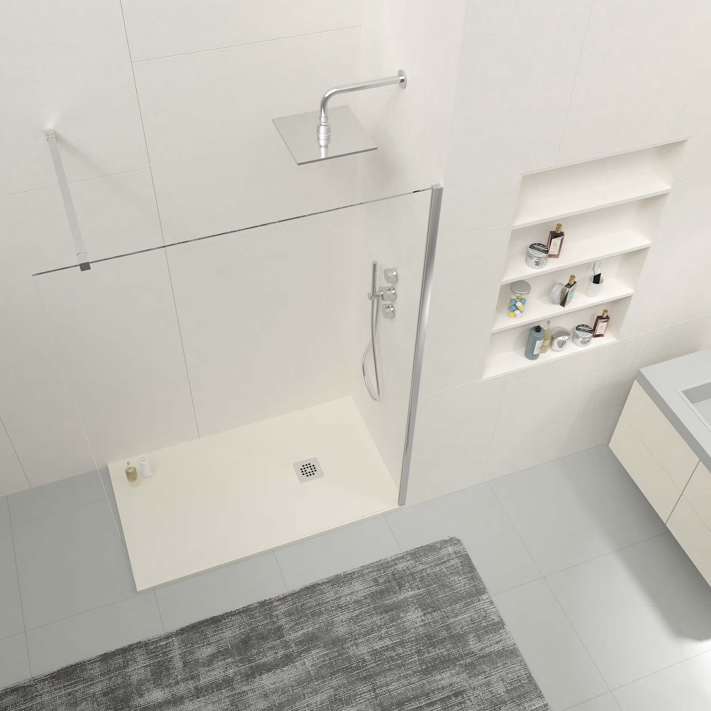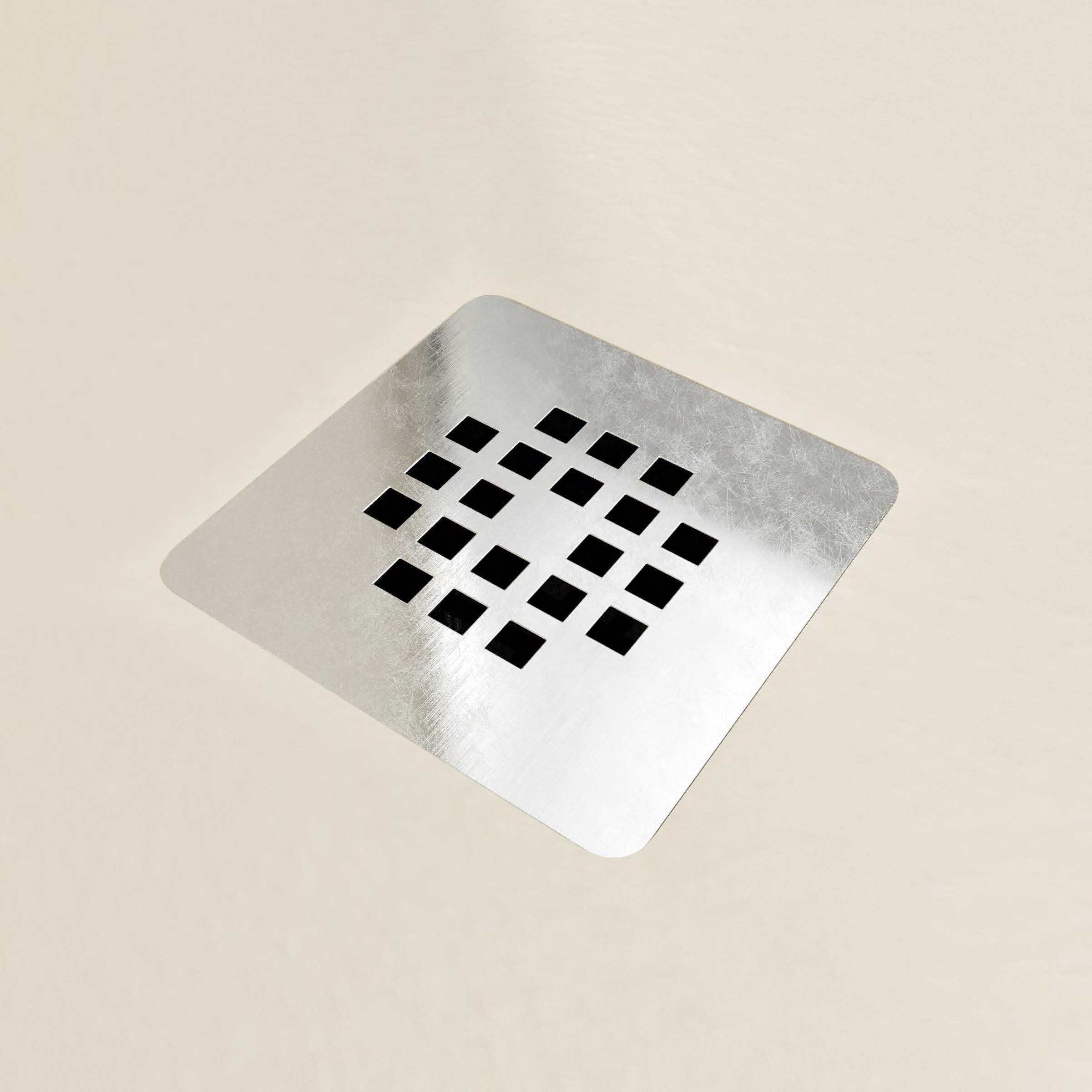 Plato ducha resina ONE Blanco Roto RAL 9001 y otros colores con textura pizarra antibacteriano y antideslizante. Rejilla inox