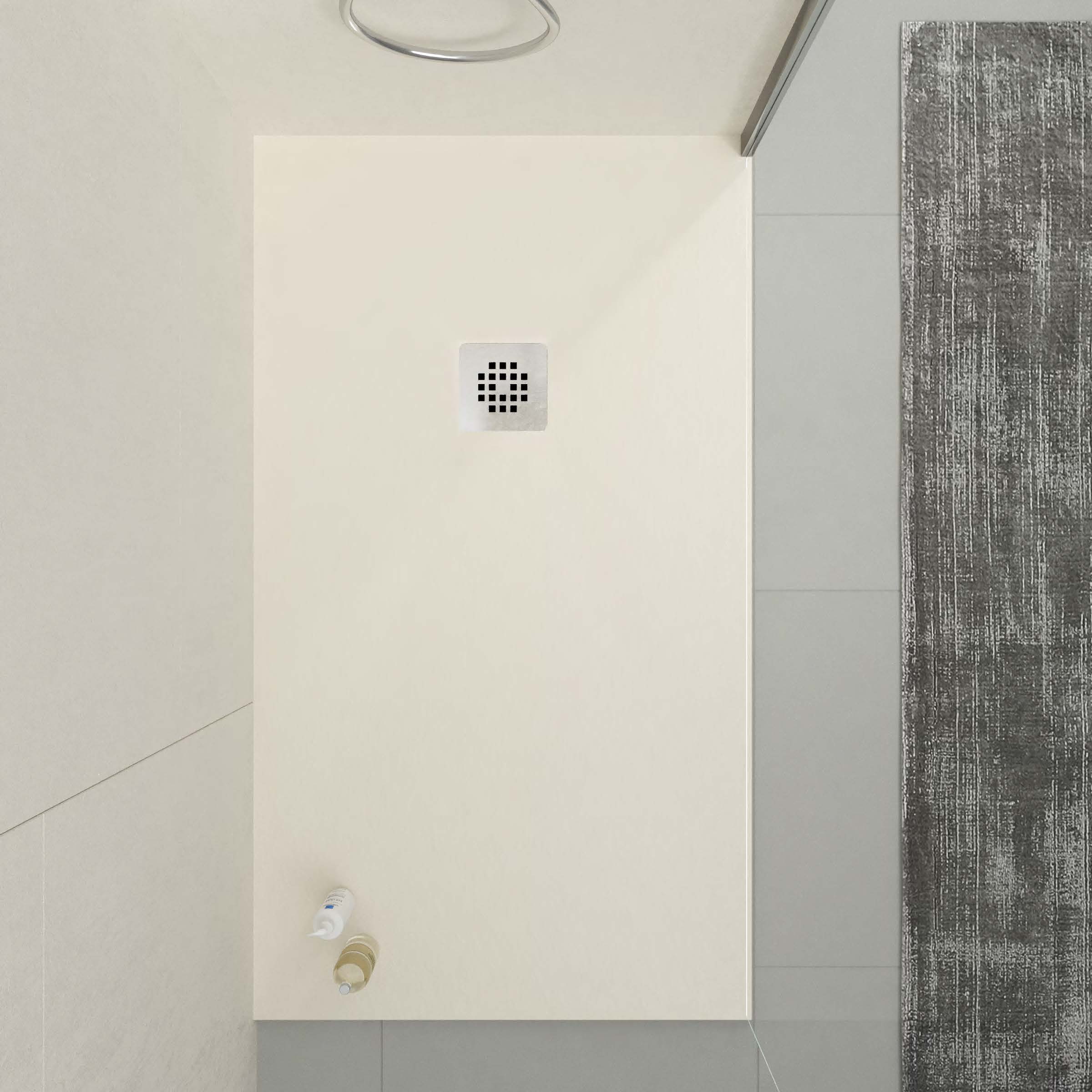 Plato de ducha modelo ONE Blanco Roto varios colores RAL 900104.jpgPlato ducha resina ONE Blanco Roto RAL 9001 y otros colores con textura pizarra antibacteriano y antideslizante. Rejilla inox