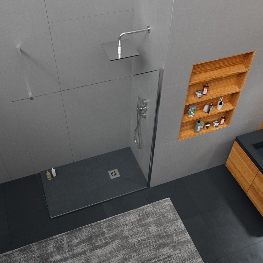 • Plato de ducha de resina a medida con textura pizarra extraplano