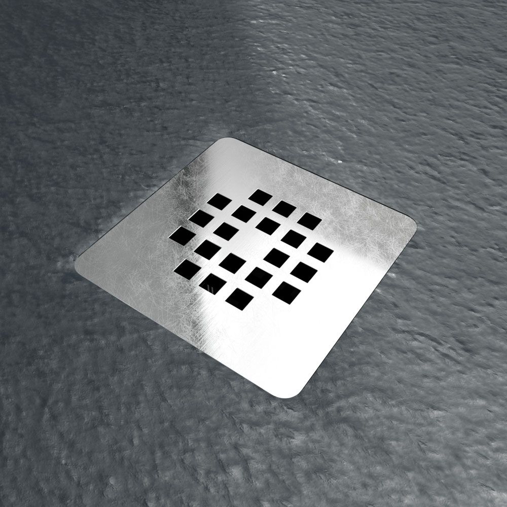 Plato ducha resina ONE Gris Antracita RAL 7016 y otros colores con textura pizarra antibacteriano y antideslizante. Rejilla inox