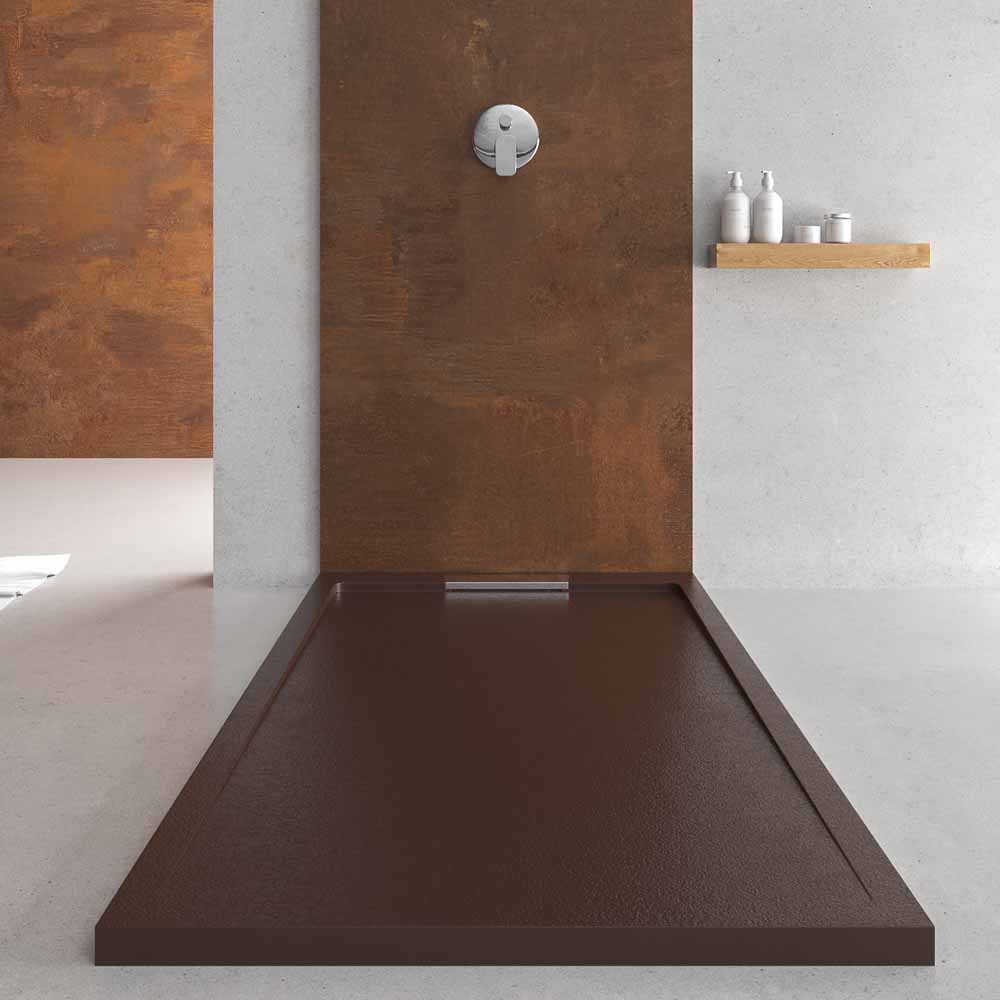El plato de ducha hecho con resinas de última generación modelo STYLE en color, presenta un diseño moderno, vanguardista y único. Es la fusión entre un plato liso y uno con marco. Esta acabado en GEL COAT antibacteriano y textura pizarra. Se puede cortar a la medida. La rejilla oculta una válvula de gran caudal.