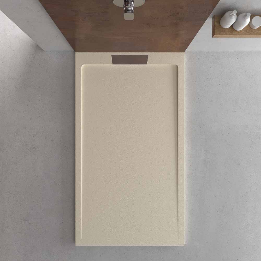 El plato de ducha hecho con resinas de última generación modelo STYLE en color Crema, presenta un diseño moderno, vanguardista y único. Es la fusión entre un plato liso y uno con marco. Esta acabado en GEL COAT antibacteriano y textura pizarra. Se puede cortar a la medida. La rejilla oculta una válvula de gran caudal.